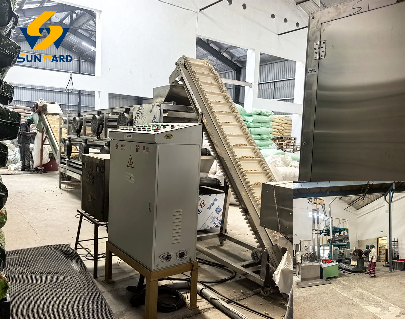 Jinan Sunward Machinery Co., Ltd is a professional manufacturer of human food and pet food machinery. Our products cover pet food machinery, fish feed machinery, snack food machinery, nutritional food machinery, grain products machinery, and eco-friendly products machinery. The company currently has 2 factories covering an area of more than 10,000 square meters, and nearly 200 employees in R&D, production,sales and after-sales service, etc departments to serve customers wholeheartedly.
