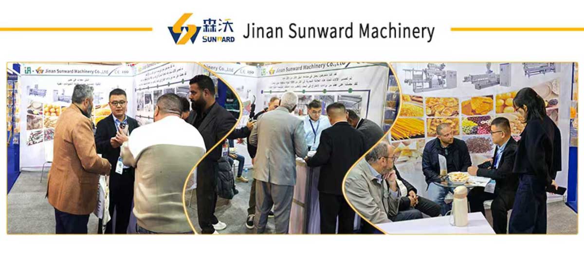 Recently, the 2025 Egypt Food and Beverage Processing and Packaging Exhibition successfully concluded at the Cairo International Convention and Exhibition Center. As a veteran enterprise in the field of extrusion machinery, Jinan Sunward Machinery Co., Ltd. received a large number of inquiries from customers in Egypt and surrounding countries, thanks to its core technologies and products that perfectly match the needs of the Egyptian market. This successfully built a bridge for cooperation in the Middle East and African markets.